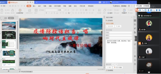为进一步推动学习习近平新时代中国特色社会主义思想走深、走实、走心,强化“战役”理论武装,深化爱国主义教育,外国语学院将防疫抗疫工作与“抗疫”特殊时期的党员教育紧密结合,于2020年5月-6月,组织全体党支部开展“青年红· 中国红”线上微党课比赛,用网络传播党的“抗疫”声音,以真人、真事、真感情教育学生党员,激发学生爱党爱国情怀,强化党员责任担当。