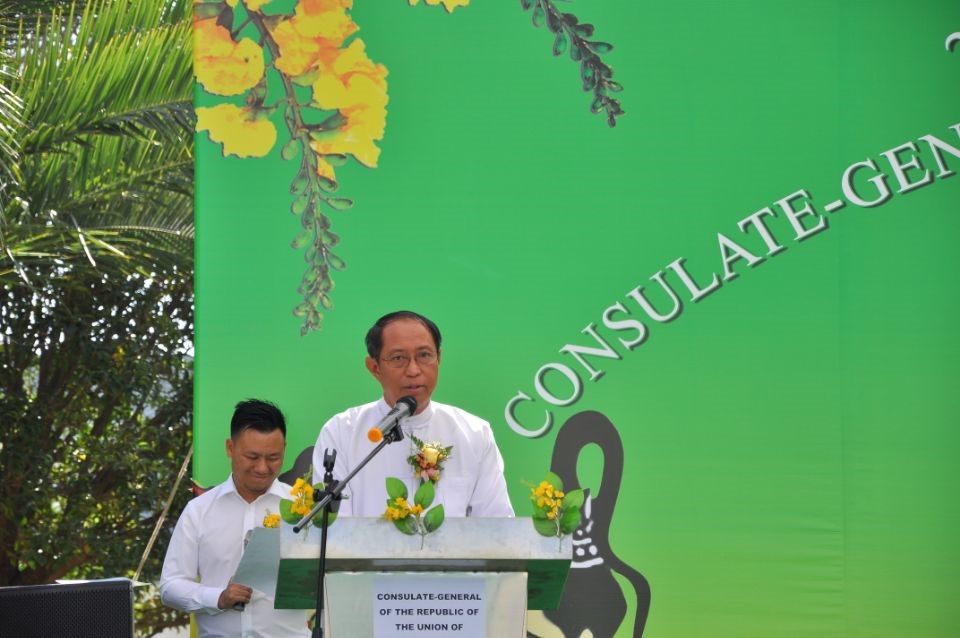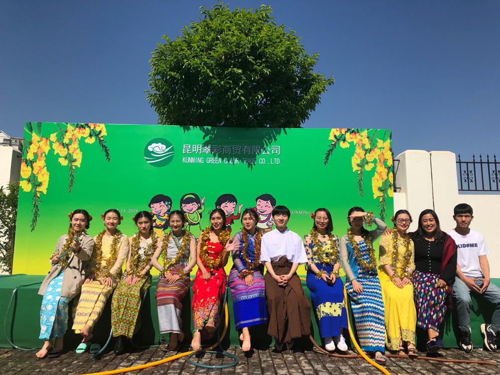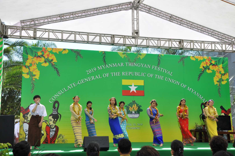 4月13日,缅甸联邦共和国驻昆明总领事馆举行泼水联欢活动,庆祝缅历新年。总领事吴梭柏携全体馆员与云南省人民对外友好协会会长,云南省人民政府外事办公室副主任,泰国、老挝、马来西亚驻昆明总领事馆总领事,云南大学副校长,缅甸在昆留学生代表,云南大学、云南师范大学、云南民族大学、昆明理工大学等院校的缅语系师生代表共300余人欢聚领馆,同庆缅历新年。开云官方网页版缅甸语专业学生及缅甸留学生共11人参加了此次泼水节活动的文艺表演。