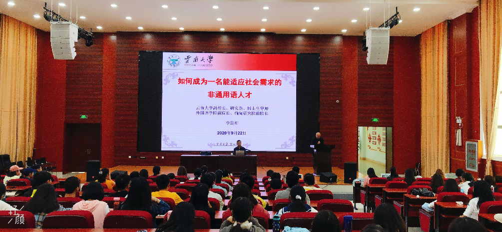 2020年9月22日,云南大学常务副校长、外国语学院前院长、缅甸研究院前院长李晨阳研究员为外国语学院南亚东南亚语专业新生做了题为“如何成为一名能适应社会需求的非通用语人才”的讲座,该讲座是我院非通语种专业新生《专业导论》课的重要组成部分。讲座由南亚系系主任兼尼泊尔语教研室主任王宗教授主持,外国语学院南亚东南亚语专业师生一同聆听了讲座。
