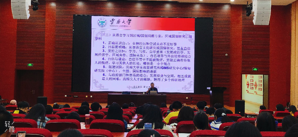 讲座伊始,李副校长对新生同学来到开云官方网页版表示热烈的欢迎,同时希望通过发自内心的沟通和交流,引导新生正确认识自己的专业、学校、社会、国家与世界,找到自己的人生定位。李副校长说,“解决同学们的疑惑,思想引领非常重要,早沟通比晚沟通好”。以此为初衷,李副校从自身长期从事缅甸研究的经历出发,从国家与云南省建设的需要、学校发展的需要、个人成长的需要等多方面进行讲述,选取云南大学非通用语建设中的典型案例,鼓励新生树立专业自信。