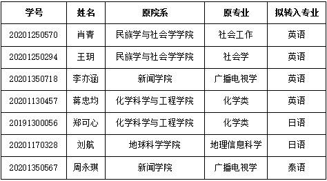 根据《关于2021年春季学期云南大学本科学生自主选择专业工作的通知》,外国语学院于2021年4月2日对各专业申请学生进行面试,经综合考查,拟接收学生名单如下: