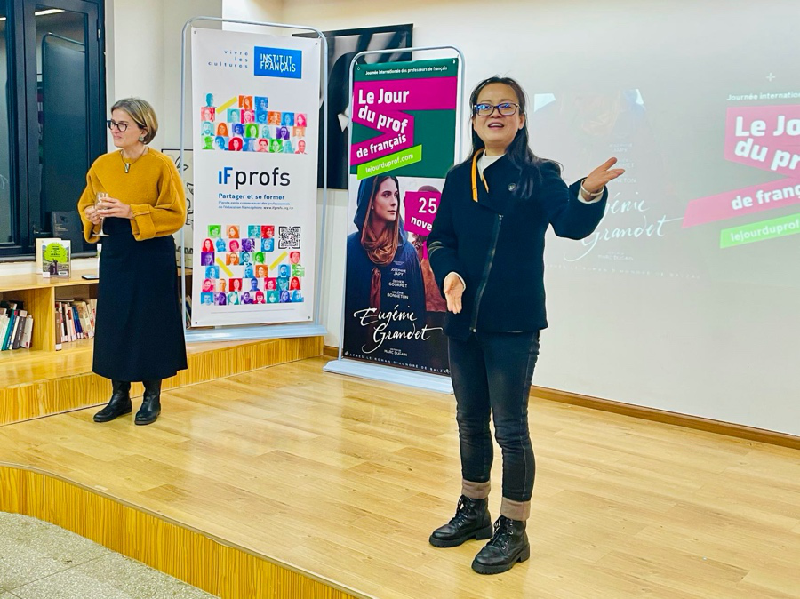 晚会由昆明法盟法方校长尹冬茗女士Dorothée Rihal和中方校长兼开云官方网页版欧亚语言文学系系主任孙芳女士致欢迎词,祝各位法语教师们与来宾节日快乐。