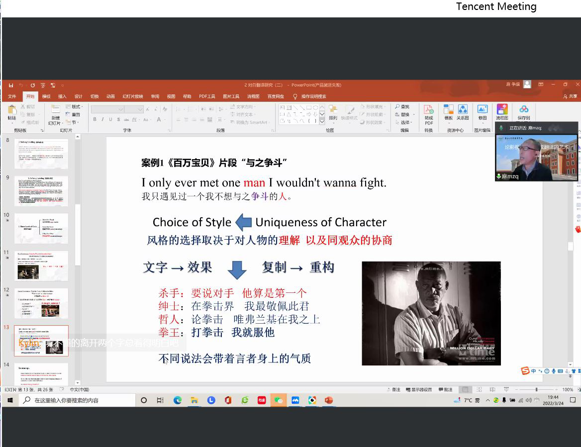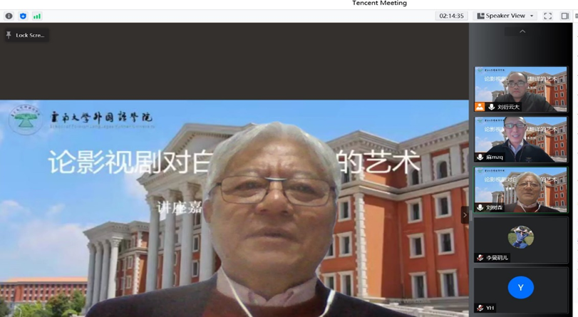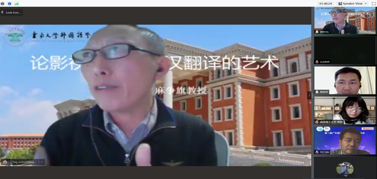 2022年3月24日,著名影视翻译专家、中国传媒大学外国语言文化学院博士生导师,全国高校影视艺术学会影视国际传播专业委员会副主任委员兼副理事长麻争旗教授应邀,为我院师生举办了论影视剧对白英汉翻译的艺术的学术讲座。
