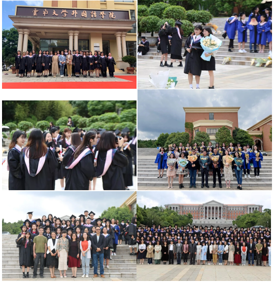 全院师生合唱国歌,毕业典礼正式开始。刘树森院长代表外国语学院全体师生对2022届毕业生圆满完成学业表达了最真诚的祝贺。刘院长表示,很欣慰地看到毕业典礼的召开,一届新的毕业生即将走出校园,为社会提供新鲜的血液。同时,为印地语专业的首届毕业生考研考取率达40%而感到骄傲,为外院今年各专业较高升学率感到自豪。刘院长接着解释了英语中“毕业”的单词“commencement”,它既是“毕业”,也是“开始”的意思,象征着毕业生们将辞别积淀满满的四年,开启一段新的征程。最后,刘院长以“我是云南的,云南云大的”这样一段改编自网络热梗的调子,点燃了现场的气氛,在场师生们纷纷献上了热烈掌声和欢呼声。