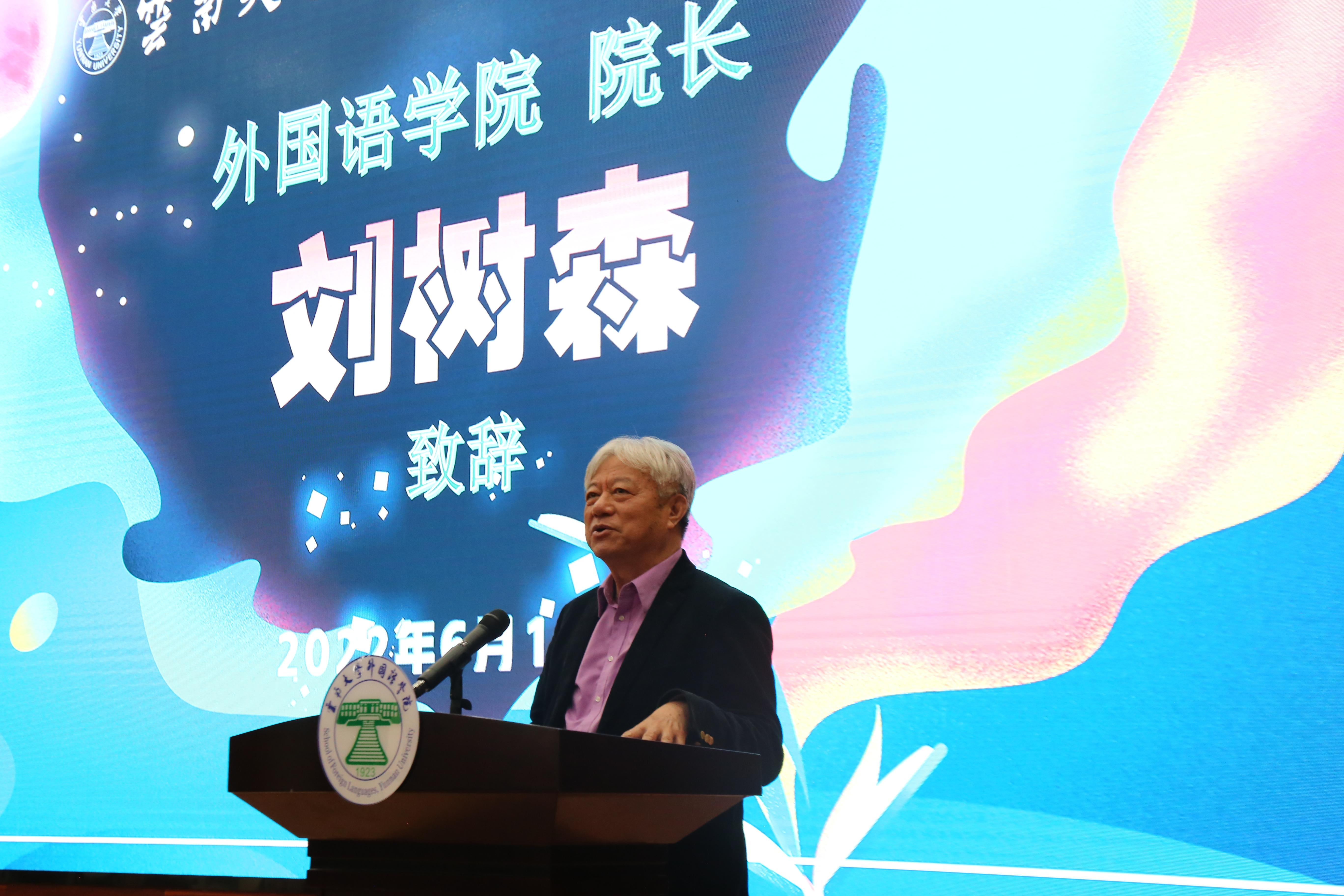 随后,外国语学院院长刘树森教授致辞。刘院长表示,我院在本届大赛中取得了不错的成绩,十分值得肯定。我们要继续努力,争取更上一层楼。