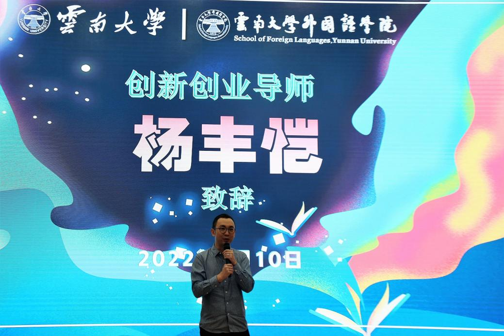 表演结束后,创新创业导师杨丰恺老师进行了总结发言。杨丰恺老师为本次外院的所有参赛项目都逐一进行了悉心指导,为同学们的项目提升给予了很大的帮助。杨老师表示,会继续陪伴外院的同学们继续努力,冲击省赛、国赛。