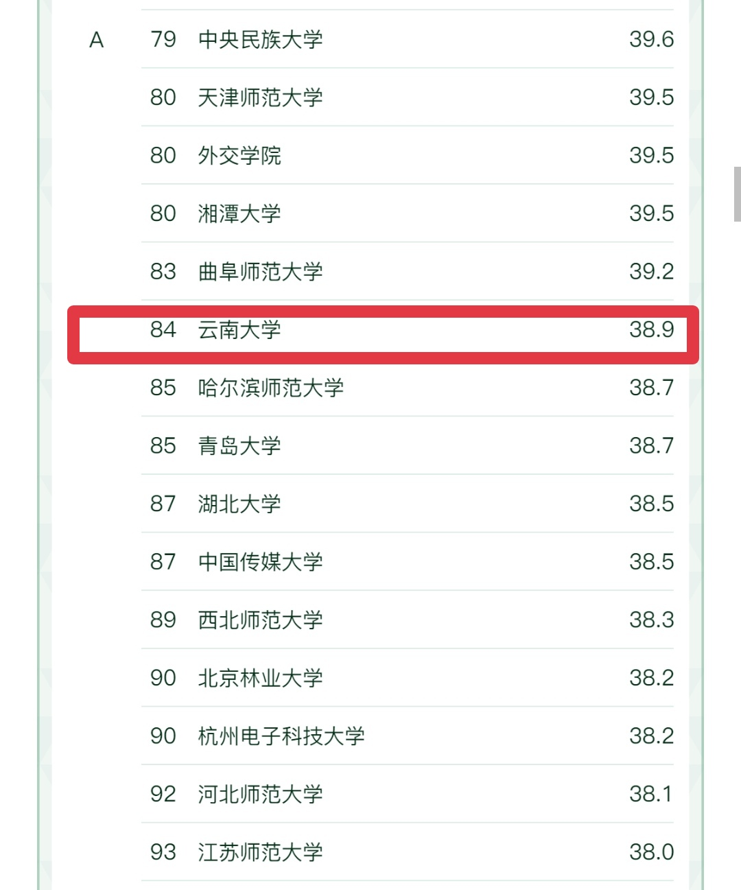 开云官方网页版英语专业的软科排名84位,远超其他院校,位列云南第一。