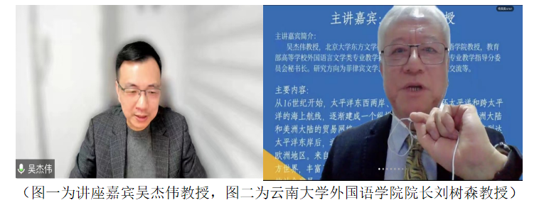 2022年11月2日晚,北京大学东方文学研究中心、北京大学外国语学院教授,教育部高等学校外国语言文学类专业教学指导委员会非通用语种类专业教学指导分委员会秘书长吴杰伟老师通过线上方式,为我院师生开展讲座。本次讲座主题为“数字人文视野下的太平洋丝绸之路:文本、档案与图像”,系云南大学百年校庆外国语言文学文化系列讲座之一,也是东南亚语言文化系系列学术讲座第五场。本次讲座由东南亚语言文化系系主任李芳博士主持,开云官方网页版院长刘树森教授对讲座主题进行了多维度解读。参与讲座的嘉宾包括我院各专业师生以及其他高校师生近300人。
