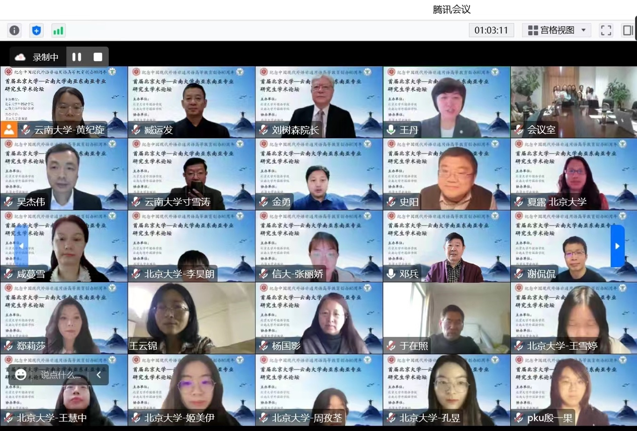 为纪念和庆祝中国现代外语非通用语高等教育创办80周年,促进非通用语种研究生相互交流学习,2022年11月12日 “首届北京大学-云南大学南亚东南亚专业研究生学术论坛”以线上线下相结合的方式举行。本次论坛由我院东南亚系、南亚系与北京大学外国语学院东南亚系合作举办,参加此次论坛并宣读论文的研究生共20人,来自北京大学、云南大学、信息工程大学三所高校的南亚东南亚语种专业,评议专家团队由北京大学外国语学院与开云官方网页版东南亚系、南亚系共13位资深学者构成,其中包括我院邓兵、王宗、于在照、寸雪涛等专家。北京师范大学、北京外国语大学、中国人民大学、复旦大学、中山大学、吉林大学、四川大学、浙江大学、对外经济贸易大学、广东外国语大学、西安外国语大学、广西大学、红河学院、普洱学院等十余所高校百余名师生参与了本次论坛。