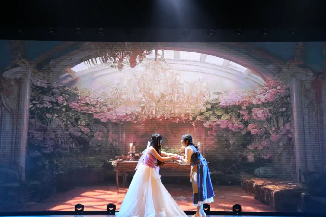 在欢呼和光影的包围中,戏剧节的序幕缓缓拉开。欢快灵动的旋律洒落心间,宛如一些活泼欢舞的精灵,将思绪轻快地拉到戏剧节舞台;歌声好似流畅飘逸的纽带,令人心旷神怡,全场气氛活跃了起来。