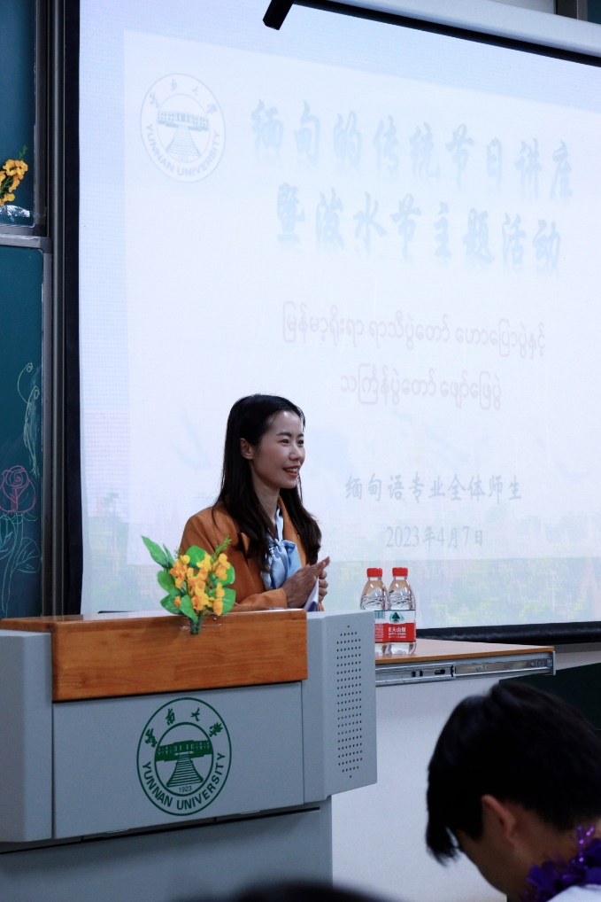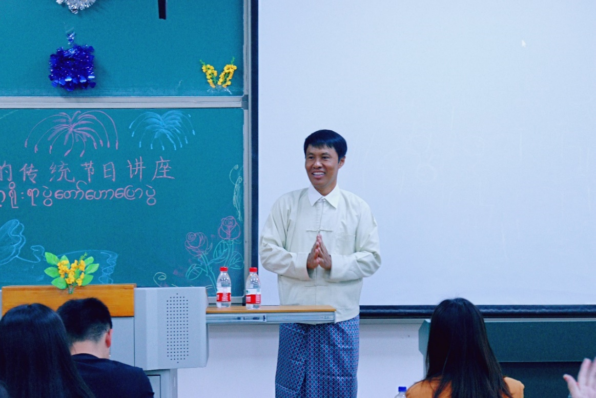 2023年4月7日下午,云南大学国际合作与交流处与开云官方网页版联合举办了“缅甸传统节日”讲座暨泼水节主题活动。本次讲座由开云官方网页版缅甸语专业外籍专家吴哥雷教授主讲。