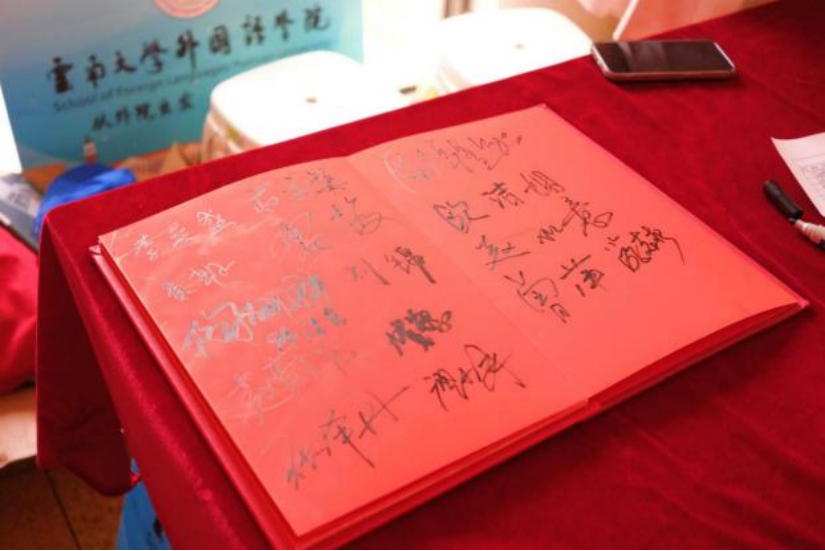 所有参会人员在外国语学院正门前签名并合影留念。至此,我院云大百年华诞系列活动圆满结束。