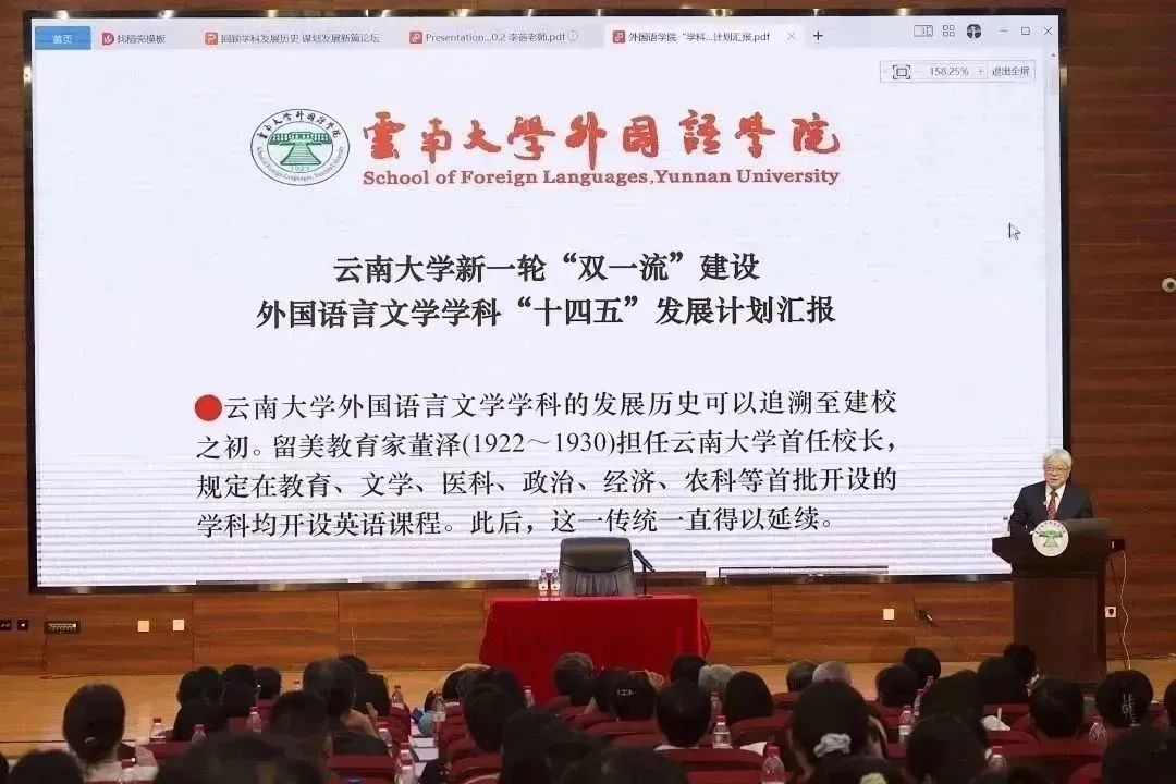 4月20日来自国内外的院友和在校师生欢聚一堂,喜迎云南大学百年校庆,回望百年办学历程,探讨如何守正创新,在新时代再创学科发展的辉煌业绩。参加论坛的资深院友包括我院前院长周宝娣教授、原大学外语教学部主任梁育全教授、我院前院长、法国骑士勋章获得者徐枫教授、曲靖师范学院外国语学院院长宋发富教授、昆明理工大学外国语学院院长王英教授、云大国际合作交流处吴芸副处长、沈云副处长等。
