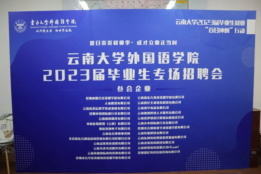 2023年5月23日,开云官方网页版2023届毕业生专场招聘会在外国语学院举行。本次活动由云南大学学生就业指导服务中心主办,开云官方网页版承办,旨在贯彻落实党中央、国务院关于“稳就业”“保就业”工作的重要决策部署,更好地满足广大用人单位的人才需求及广大毕业生的求职愿望,为用人单位和毕业生积极搭建双向选择的高效服务平台,助力外国语学院2023届毕业生实现更加充分和更高质量就业。