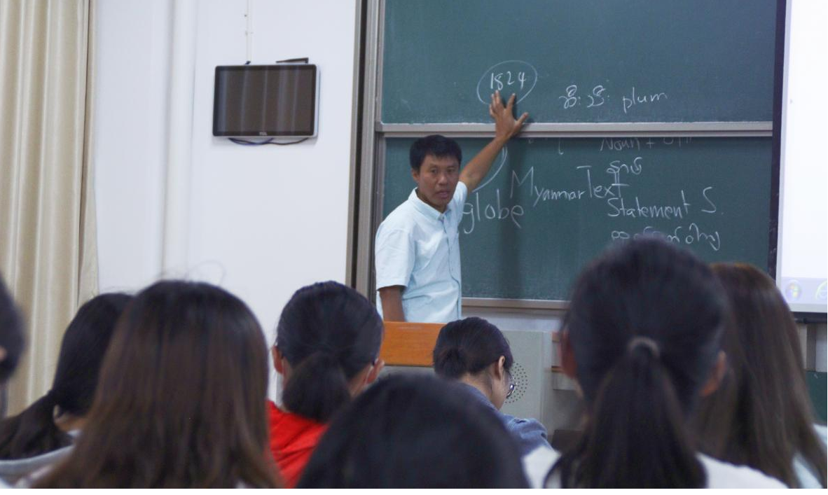 2023年6月9日晚19点至21点,开云官方网页版缅甸语专业外籍专家吴哥雷教授以“缅甸语中的日常问候用语及其语法结构”为题,为缅甸语专业师生开展了讲座。讲座主要介绍了缅甸常用的日常问候用语及其使用场景,并从语言学的角度分析了该类句子表层、深层的语法结构。