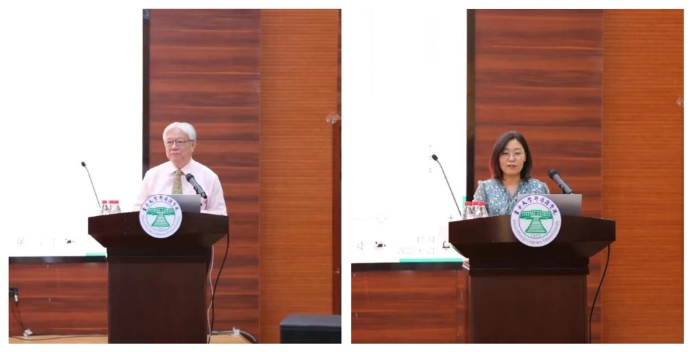 刘树森教授(左)进行开场致辞,崔凤娟教授(右)主持论坛