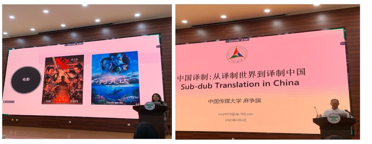 中国传媒大学外国语言文化学院金海娜教授对影视翻译理论、方法与前沿趋势进行了阐述。金教授首先同听众分享了《阿凡达》《满江红》《断魂蓝桥》等电影名称的翻译,让听众了解了影视翻译的具体应用;其次介绍了影视翻译研究的发展历程,分析了影视翻译的具体内涵与不同的翻译形式;最后讲述了影视翻译研究的前沿趋势:理论的创新、领域的扩展、视野的阔宽和中外的对话。