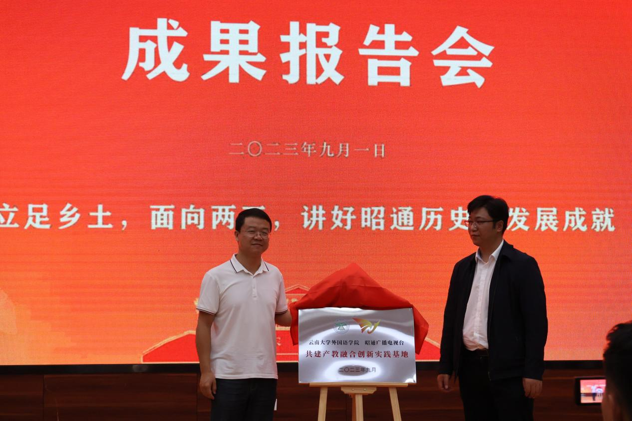 随后,外国语学院副院长王浩和昭通广播电视台副台长曹健共同为“开云官方网页版·昭通广播电视台--共建产教融合创新实践基地”揭牌。
