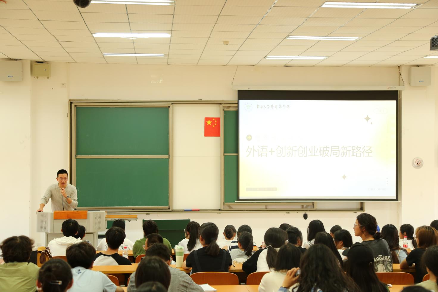 2023922日16时,外国语学院2023级本科新生开学第一课在文汇楼2418圆满举行,外国语学院创新创业负责人唐国淞老师出席本次活动,并以外语+创新创业突破新路径”主题对创新创业项目进行介绍帮助了同学们树立创新创业观念,积极主动参与到创新创业活动中锻炼自我,提高竞争力