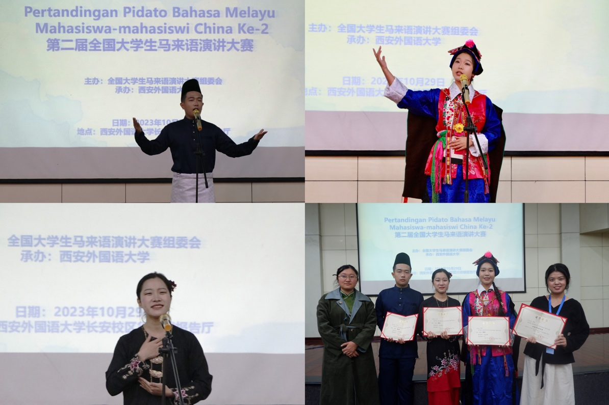 2023年10月28至29日,“第四届中国-马来西亚翻译、语言与文化国际研讨会暨第二届全国大学生马来语演讲比赛”在西安外国语大学举行,来自国内各高校的31位学生在此次大赛中同台竞技、相互切磋。我院马来语专业本科生吴彦忱、汪佳琪分别荣获低年级组一、二等奖,吴薇荣获高年级组三等奖,余俊轩老师获得优秀指导教师奖。