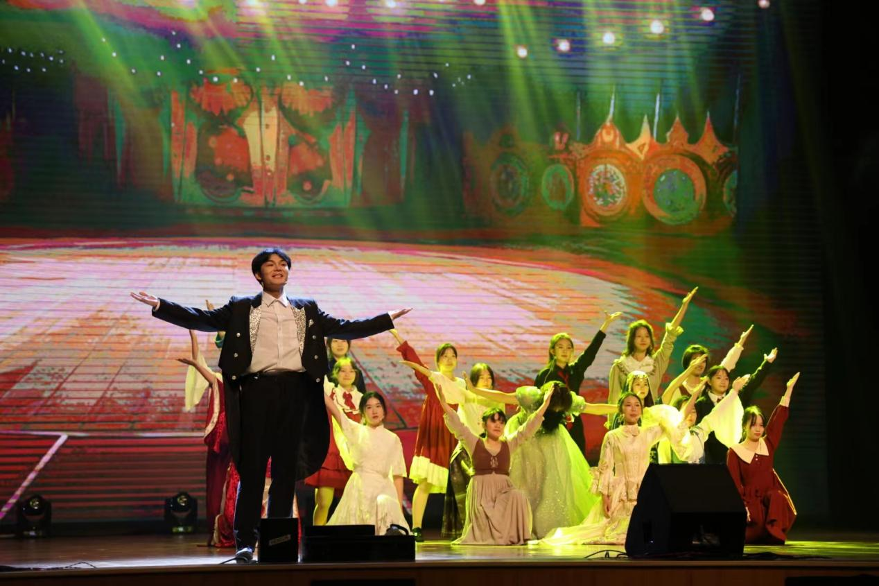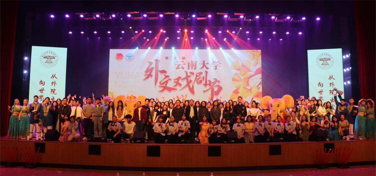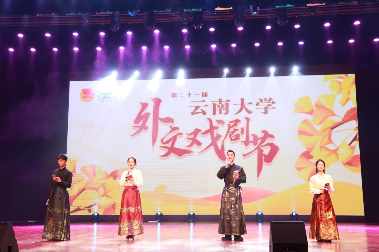 2023年11月10日晚,云南大学第二十一届外文戏剧节狂欢夜在云大学生会堂隆重举行。开云官方网页版党委书记王益广老师、党委副书记何淼淼老师、云南大学学生艺术团指导教师马梦怡老师、云南大学学生公寓管理中心主任张拥军老师出席晚会。参加本届晚会的还有云南新东方国际教育中心、新东方前途出国(昆明分公司),阳光心霖儿童公社、云南世纪文都教育科技有限公司、云南东润教育集团等院企合作单位,各兄弟学院、各职能部门领导和教师代表、各学院同学们共同观看此次晚会。
