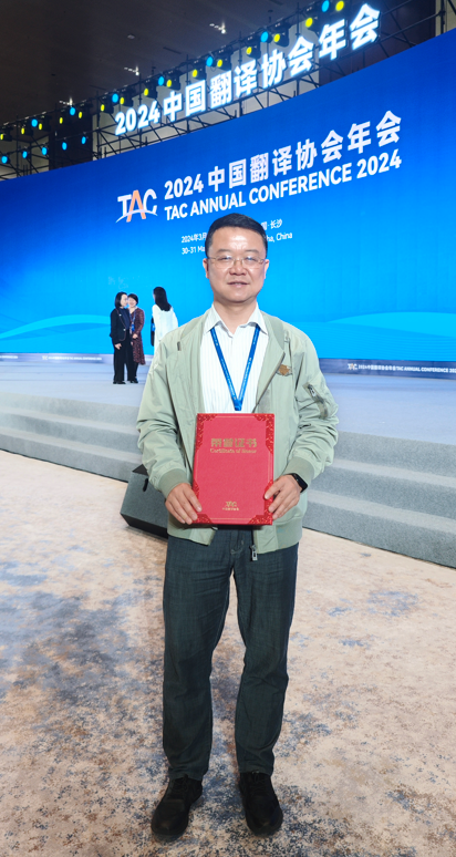 我院副院长、大学外语第二教研部教师王浩副教授在2024年中国翻译协会年会上被授予“优秀中青年翻译工作者”称号。