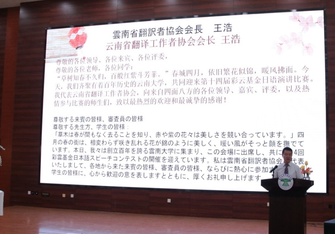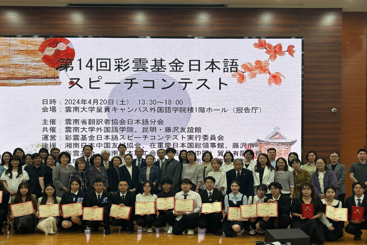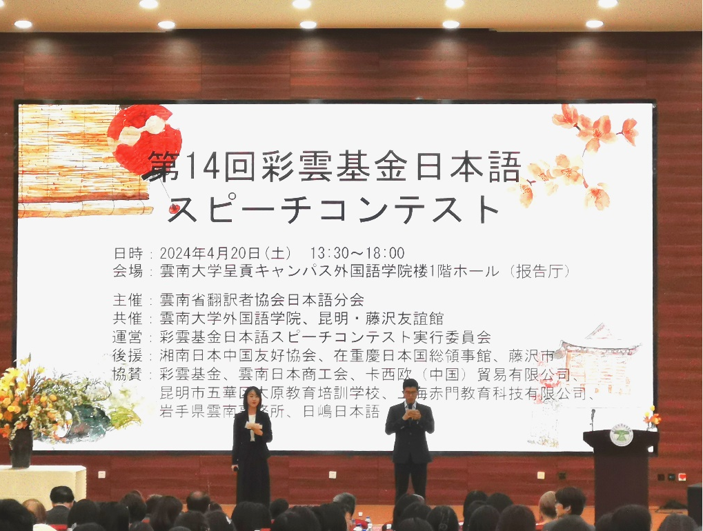 第十四届彩云基金日语演讲比赛于2024年4月20日在我院隆重举行。本届演讲比赛由云南省翻译工作者协会日语分会主办,昆明·藤泽友谊馆、开云官方网页版协办,由中方评委和日方评委共同组成比赛评委会。共有16名来自云南大学、云南师范大学、云南民族大学等开设日语专业的省内高校的选手参赛。