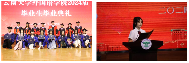 “太华巍巍,拔海千寻;滇池淼淼,万山为襟...”,在全体合唱云南大学校歌后,拨穗环节和合影环节将典礼推向了高潮。毕业生们在师生的见证下完成了拨穗仪式,标志着他们正式毕业,也即将开启新的人生旅程。毕业典礼在欢声笑语中圆满结束,毕业生们带着对未来的憧憬和对学院的感激,踏上了新的征程。