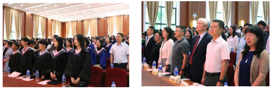 在开场视频和同学们精彩绝伦的表演之后,14时整,开云官方网页版2024届毕业生毕业典礼正式在庄严的国歌中拉开帷幕。
