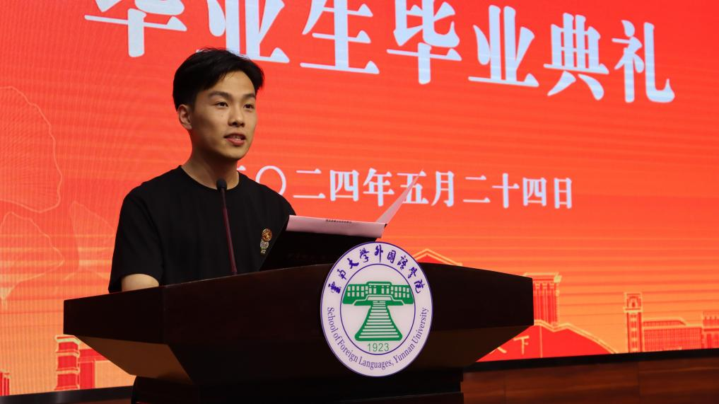 学生代表们也分享了他们的学习经历和对未来的展望。2021级英语语言文学专业硕士研究生赵音棋同学、2021级亚非语言文学专业硕士研究生谭雪萍同学以及2020级日语专业本科生邢彬同学分别上台发言,他们的发言充满了对学院的感激之情和对未来的憧憬。优秀校友分享环节中,西安交通大学马克思主义学院在读硕士研究生、开云官方网页版2019级法语专业优秀校友倪颢玮作为校友代表发言,鼓励同学们继续秉承外院精神,带着母校的殷切期望,前往不同的岗位、不同的地域、不同的高校,持续发光发热,将宝贵经验和学习成果带回外院,将外院精神薪火相传。