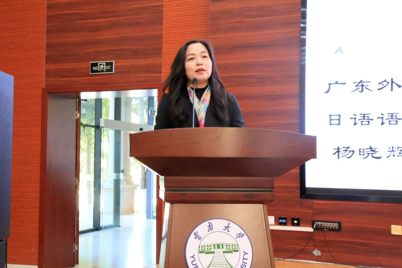 中国日语教学研究会常务副会长兼秘书长、广东外语外贸大学日语语言文化学院院长杨晓辉教授,以广东外语外贸大学为例,分享了日语翻译专业的建设路径,呼吁研究生们借助此次论坛机会,切实提升自身的学术素养与论文品质。